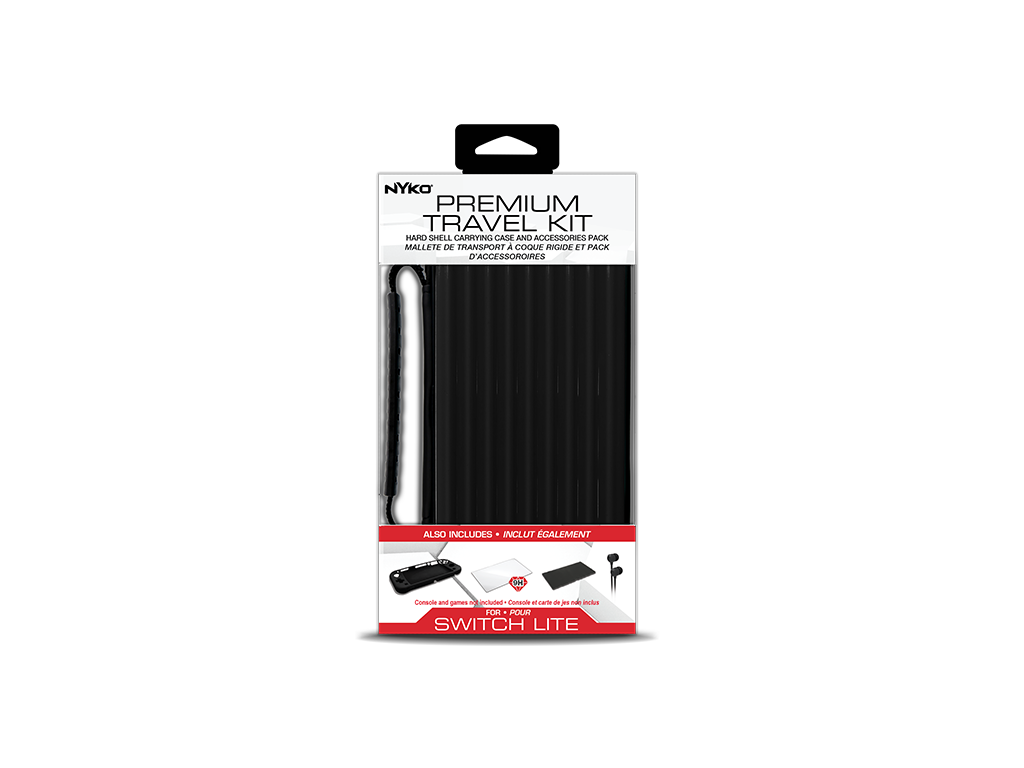 Nyko’s Premium Travel Kit is the premier accessory assortment in travel and protection for Nintendo Switch™ Lite. The hard shell case conveniently stores and transports the Switch Lite while the interior is lined with a soft plush to keep the console protected. Inside the case is an accessory holder for storing additional charging cables or other accessories and up to 8 games can be stored in the built-in game card holder for easy access. A 9H tempered glass screen protector provides top of the line protection against scratches and damage for the Switch Lite screen while the included microfiber cloth easily removes fingerprints and smudges. The Silicone Grip Cover will keep the exterior of the Switch Lite protected and the ergonomic grip provides added comfort during extended gaming sessions. Easily listen to audio from the Switch Lite with the included wired earbuds.