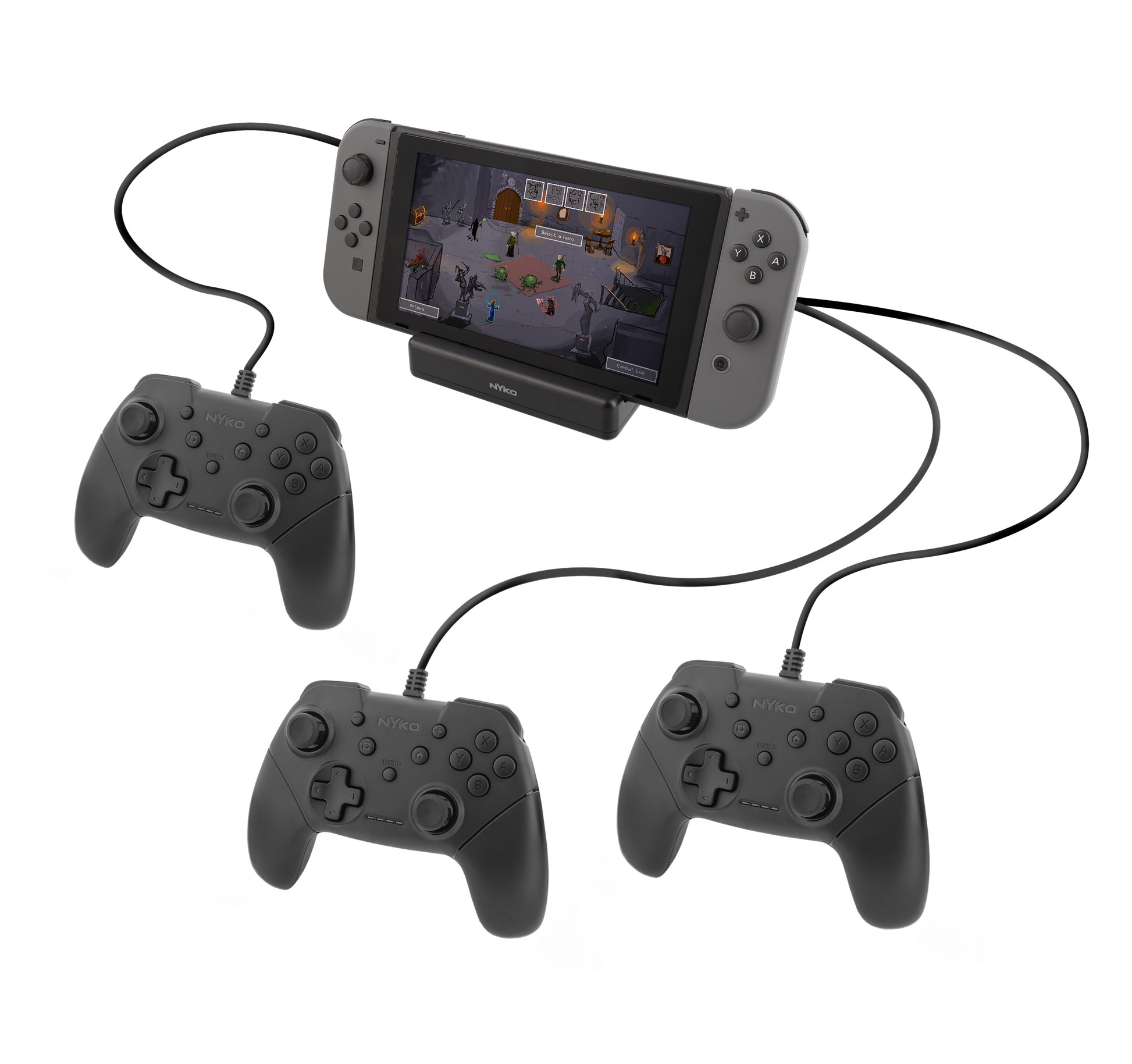 Conveniently Charge and play the Switch while on the goActs as a stand while charging the SwitchPowered by a USB Type-C AC Adapter (not included)Two integrated USB 2.0 ports and one USB 3.0 port